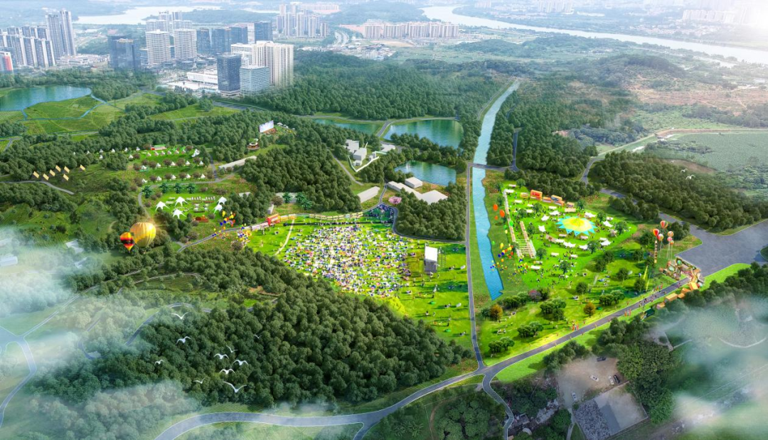 森林光影音樂(lè)公園選址增城石灘鎮(zhèn)增江畫廊北側(cè),毗鄰水系與森林景觀,占地約700畝,擬分三期建設(shè),其中首期為430畝。園區(qū)以生態(tài)藝術(shù)為基底,規(guī)劃光影裝置、音樂(lè)舞臺(tái)、露營(yíng)營(yíng)地等功能區(qū),打造晝夜聯(lián)動(dòng)的沉浸式體驗(yàn)空間。