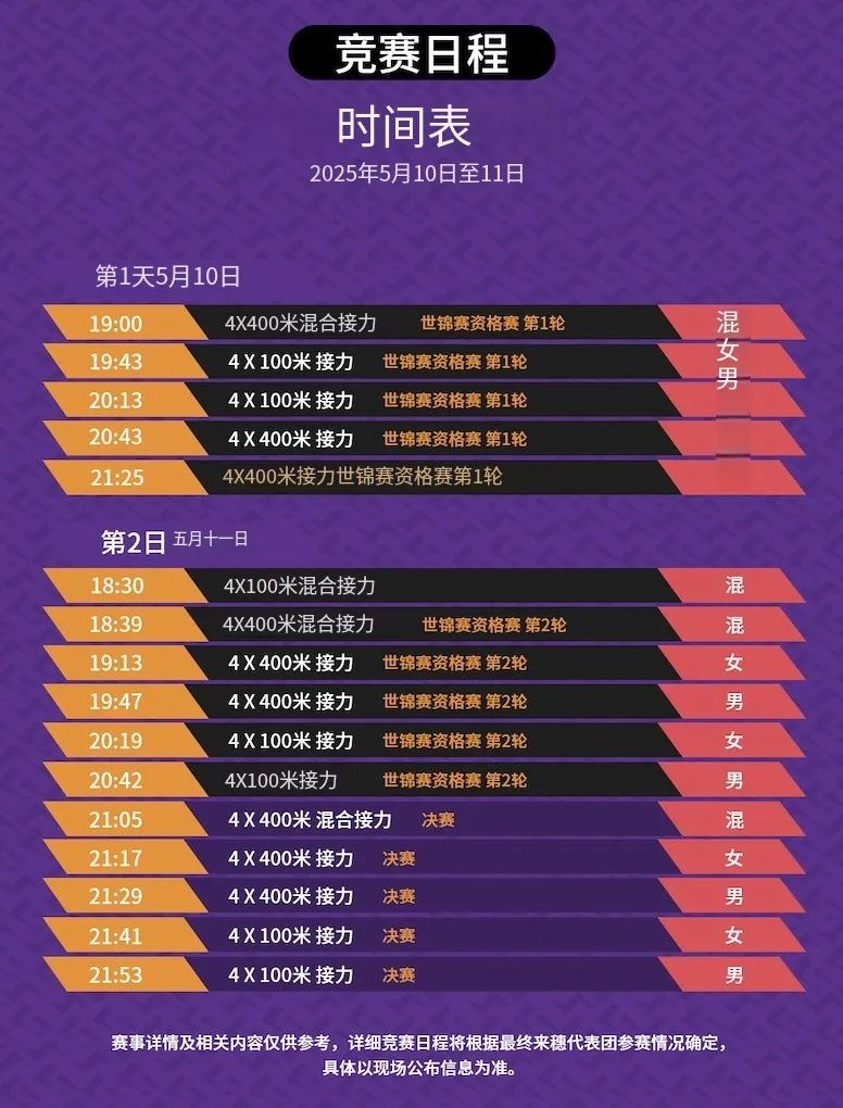 距離2025年世界田聯(lián)接力賽開幕還有2天!