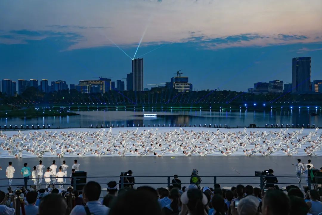 當(dāng)然,喬衛(wèi)口中的“繽紛”,并不僅僅來自于舞臺(tái)的光彩奪目、焰火絢爛。碧的水,綠的草,錯(cuò)落的城市天際線,以及從晚霞到夜幕的天空,都是成就“繽紛”的重要色彩。