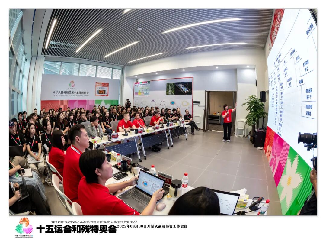 8月30日,在十五運(yùn)會(huì)開幕式倒計(jì)時(shí)71天之際,十五運(yùn)會(huì)開幕式主創(chuàng)團(tuán)隊(duì)召開了戰(zhàn)前部署工作會(huì)議。開幕式總制作人、銳豐科技董事長(zhǎng)王銳祥,總監(jiān)制劉偉強(qiáng),副總導(dǎo)演、銳豐文化總經(jīng)理黃沛凌,執(zhí)行總導(dǎo)演孟可等百余名骨干參會(huì)。九月份,開幕式籌備工作全面進(jìn)入場(chǎng)內(nèi)排練階段。